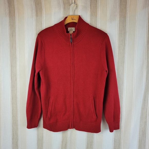 Vintage L.L. Bean 100% Cotton Full Zip Knitted Sweater Red Size Large