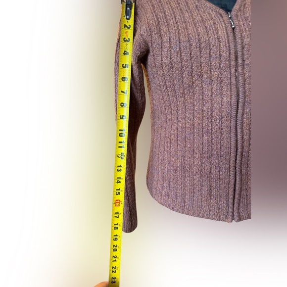 Warm, classic, and well-made. This vintage L.L. Bean women’s sweater is crafted from 100% wool in a rich brown ribbed knit with a flattering slim fit and full zip front. Made in Hong Kong, from a high-quality era of L.L. Bean production.