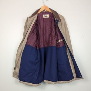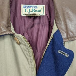 Vintage LL Bean Barn Jacket Mens L Tan Brown Leather Wool 80s 90s Chore Coat
