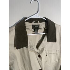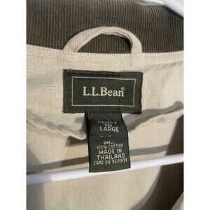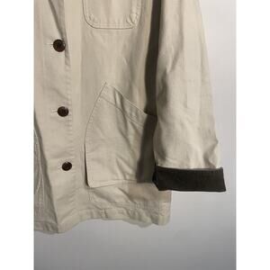 Vintage LL Bean Barn Jacket Women’s L Tan Canvas Chore Field Coat Corduroy Trim