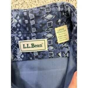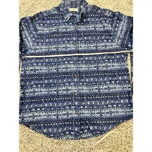 Vintage L.L. Bean Blue Flannel Button Up Men’s L Geometric SouthWestern Cowboy