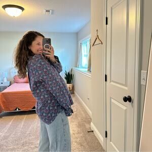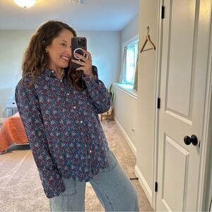 I absolutely adore this gorgeous vintage LL Bean blue red pink floral printed pure cotton wrinkle free button front long sleeve blouse/top