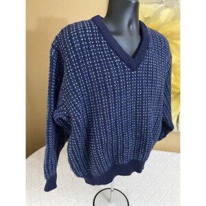 Vintage L.L Bean Blue V Neck Sweater, 100% British Wool, Size Large