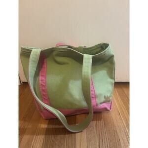 Vintage LL Bean Boat & Tote Bag USA Made Green Pink Long Straps