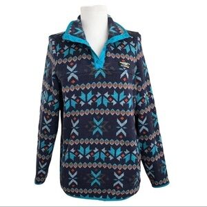 Vintage LL Bean Boho print Knit Fleece Pullover Jacket S Aztec cabincore lodge