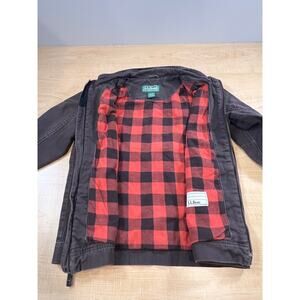 Vintage LL Bean Brown Canvas Barn Jacket 90s Flannel Lined Kids Size 14/16 L