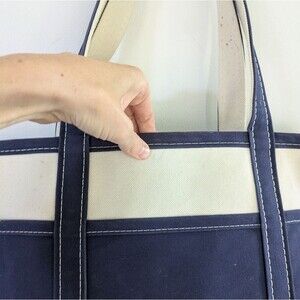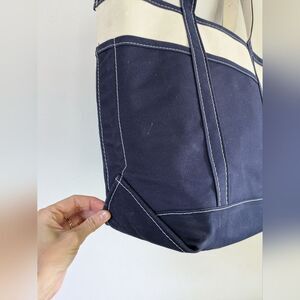 Vintage LL Bean Canvas Boat & Tote Bag 80s/90s? Navy Blue Cream Large