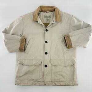 Vintage LL Bean Chore Coat Mens Size Large Beige Cotton Barn Jacket 90s Outdoor