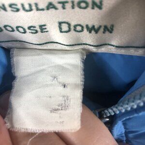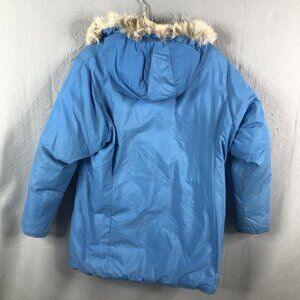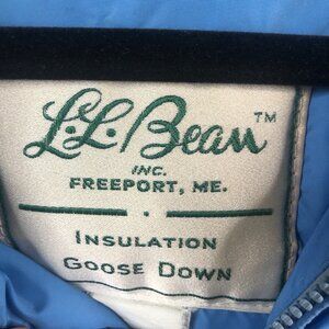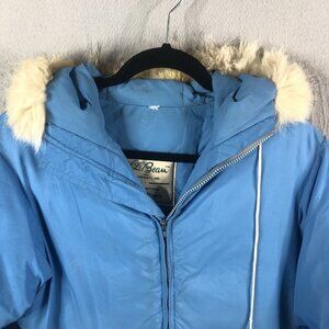 Vintage LL Bean Coat Women M Blue Puffer Goose Down Hooded Coat Jacket Fur Trim