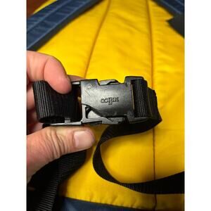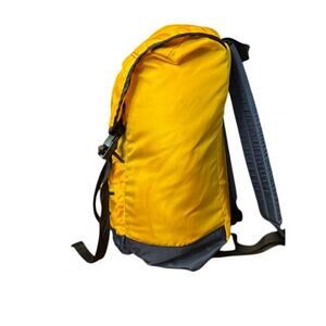 Vintage Vintage LL Bean Continental Backpack Rucksack Vibrant Yellow Blue 90s hiking camping gorpcore. great commuter or school bag also. In excellent vintage condition with no rips or holes and very minor markings BUT one side of the clip has a piece off which doesn't seem to effect functionality at all. See pics. a great vintage bag!