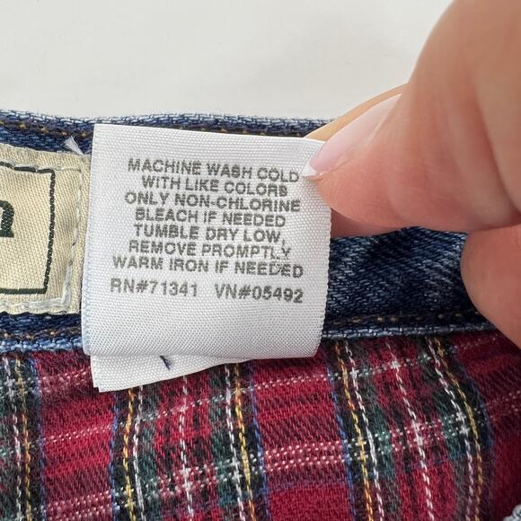 Vintage L.L. Bean Flannel Lined High Waisted Jeans Red Plaid Lining Size 14 M/T