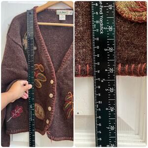 Vintage LL Bean Flaw Shetland Wool Appliqué Button Up Cardigan Size Large
