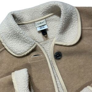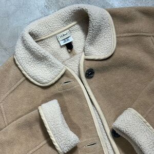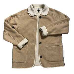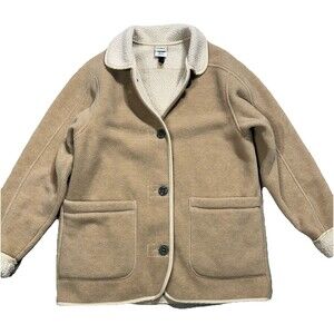 Vintage LL Bean Fleece Chore Jacket Women's Small Tan Button Front Made in USA