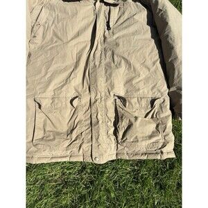 Vintage LL Bean Goose Down Jacket Coat Tan Beige Removable Hood Puffer Tall XL M