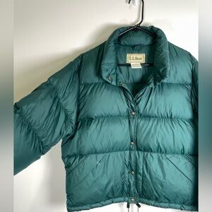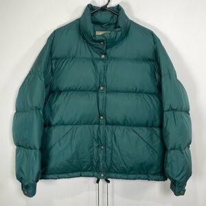Vintage LL Bean Goose Down Womens M Snap Nylon Jacket Green Packable Hiking