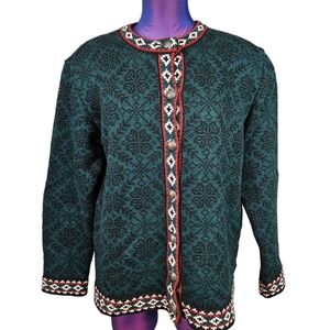 Vintage L.L. Bean Green Keltic Nordic Button Front Cardigan Sweater Size Medium