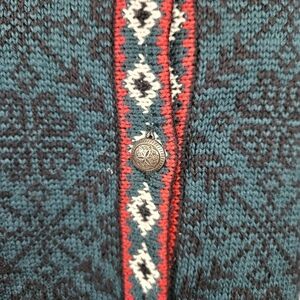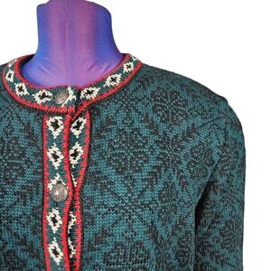 In excellent condition Vintage L.L. Bean Green Keltic Nordic Button Front Cardigan Sweater Size Medium Women's.