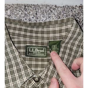 Vintage L.L. Bean Green Plaid Long Sleeve Button Up Shirt Size Large