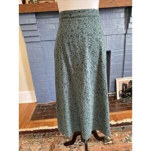 Vintage LL Bean L Petite Skirt A-Line Midi Below Knee Retro Elastic Waist Floral