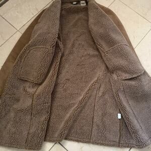 Vintage LL Bean MP Brown Suede Sherpa Lined Coat Jacket Button Barn Work Boho