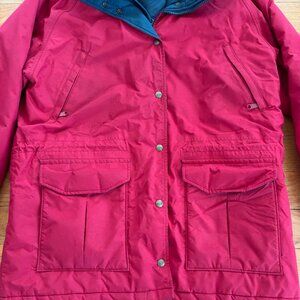 Goretex/Thinsulate thermal keeps you warm in the winter. Detachable hood. Nice, gently used condition. Has some slight discoloration on the lower sleeve/sleeve cuffs. See photos.