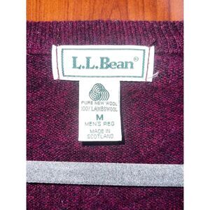 Vintage LL Bean Men Sweater M 100% Lambswool Wool V Neck Maroon Made In Scotland