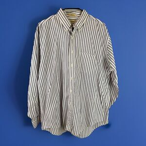 Vintage LL Bean Men's Button-Up shirt is a testament to timeless fashion. The gray striped design exudes a sense of sophistication, while the comfortable cotton material ensures ease of wear for any occasion. Catering to the Big & Tall with a size of 17.5, this shirt offers a regular fit that promises a relaxed yet tailored look.