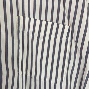 Vintage LL Bean Men’s 17-35 Gray Striped Button Down Shirt Made In Hong Kong