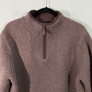 Vintage LL Bean Men's Brown 100% Lambs Wool Quarter Zip Sweater Size XL