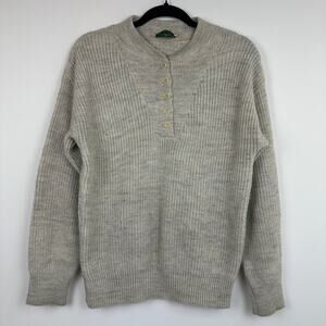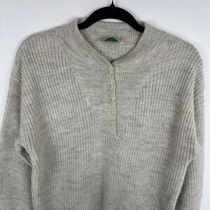 Vintage L.L. Bean Mens High Trek Yarn Quarter Button-Up Beige Sweater Medium