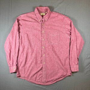Vintage L.L. Bean Mens Large Cotton Button Down Red Long Sleeve Shirt USA Made