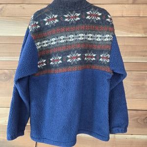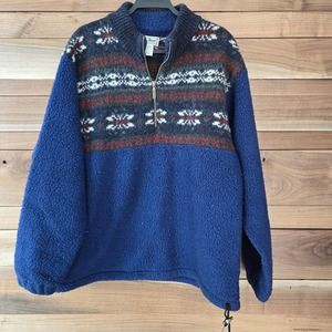 Vintage L.L. Bean Mens Pullover Fleece Aztec Wool Sz M Blue Relaxed Heavyweight