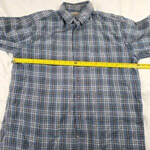 Vintage L.L. Bean Mens Tall Large Plaid Button Up Shirt Blue Cotton Long Sleeve