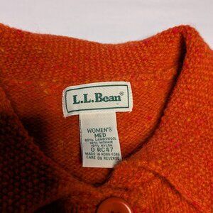 Vintage LL Bean Orange Lambswool Cardigan Sweater Size Women's Medium Button Up
