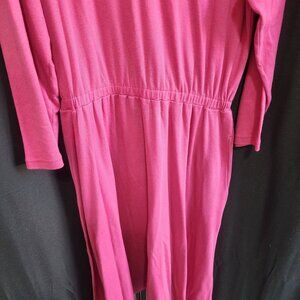 Vintage LL Bean Pink Cotton Jersey Henley Dress with Pockets Size L