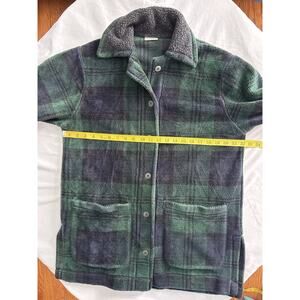 Vintage LL Bean Plaid Fleece Button Jacket Womens Size Medium Green Blue Comfort