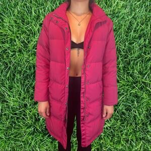 L.L. Bean Pink Goode Feather Down Long Puffer Coat