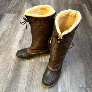 Vintage L.L. Bean Quilted Sherpa Lined Duck Boots Womens Size 7M Pull On Rubber