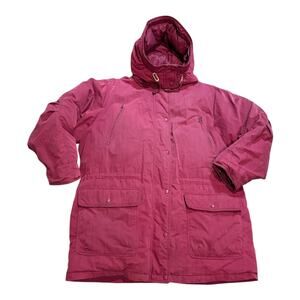 Vintage L.L. Bean Red Burgundy Goose Down Parka Coat removable hood size XL
