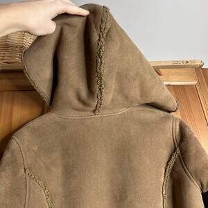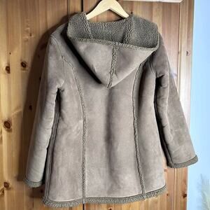 Vintage L.L. Bean Sherpa Lined Suede Toggle Coat Women’s Small Hooded Brown Barn