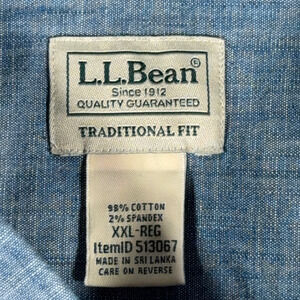 • LL Bean tag with text “Since 1912 QUALITY GUARANTEED TRADITIONAL FIT”