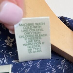Vintage LL Bean Shirt Dress Size 14 Blue 90s Ditsy Cottage Tie Floral Modest