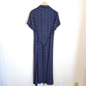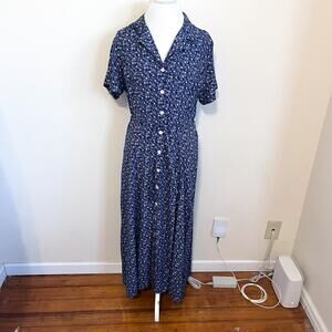 Vintage LL Bean Ditsy Floral Cottage Prairie Modest Tie Women's Midi Shirt Dress