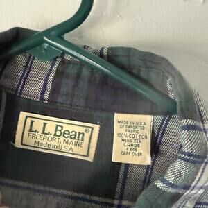Vintage LL Bean Shirt Mens Large Green Blue Plaid Button Down Made in USA 90s