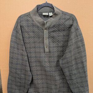 Vintage LL Bean Sweater Men's Large Green T-Snap Pullover Plaid Quilted Crewneck
