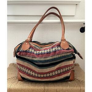 Vintage L.L. Bean Tapestry Weekender Duffel with leather handles