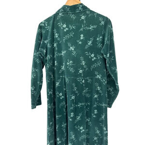 Vintage LL Bean Velour Maxi Dress 8 Long Sleeve Button Front Cottagecore Green