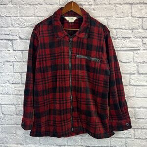 Vintage LL Bean Women Red Plaid Flannel Jacket Full Zip Long Sleeve Large USA