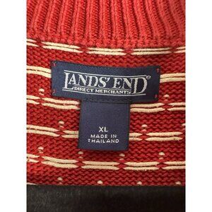 Vintage Lands' End 1/4 Zip Sweater Size XL. Embrace the Apres Ski, Nordic, and Cozy Cabin Core aesthetic. Features a classic Red/White Snowflake/Geometric pattern. Made from warm, Heavyweight 100% Cotton. Perfect for Winter, Holidays, and layering. Excellent preowned condition. Flat measurements Pit to Pit: 21 inch, Length: 26.5 inch. #LandsEnd #Christmas #ApresSki #NordicSweater #Snowflake