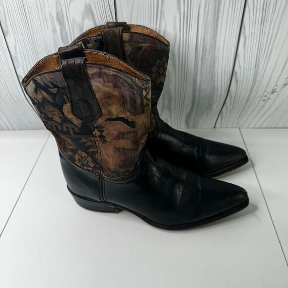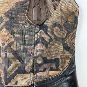 Vintage L.L. Bean Women’s 8 Cowboy Boots Black Leather Tapestry Western Boho USA